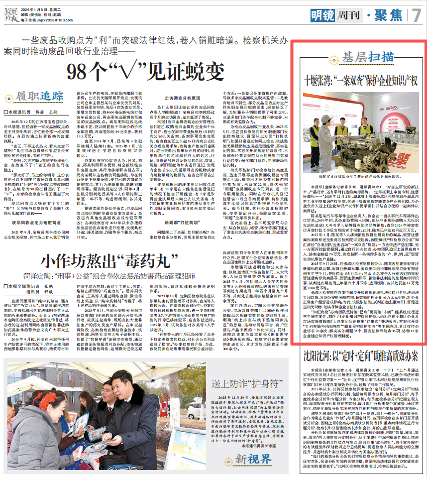 2026年1月6日《检察日报》刊登《十堰张湾:“一案双查”保护企业知识产权》